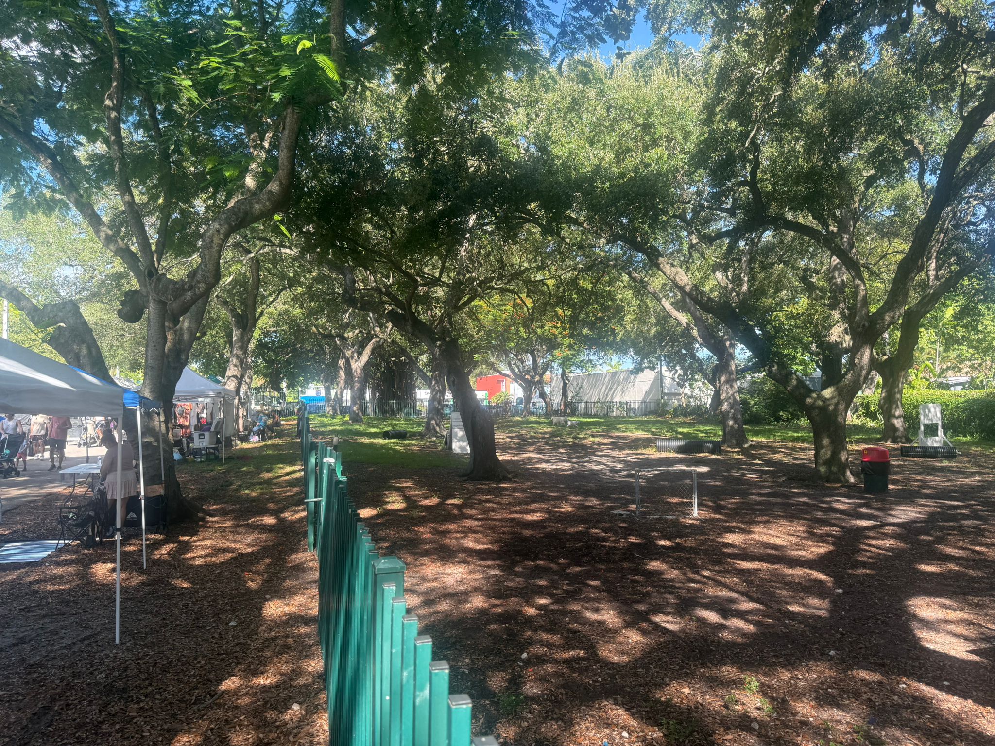 While the park is active every day, Saturday morning is the main event. A free, community-led yoga class meets at 10 AM beneath the banyans. By the time mats are rolled up, the farmers market is in full swing—stalls of fresh produce, breads, juices, and handmade goods stretch under the shade.