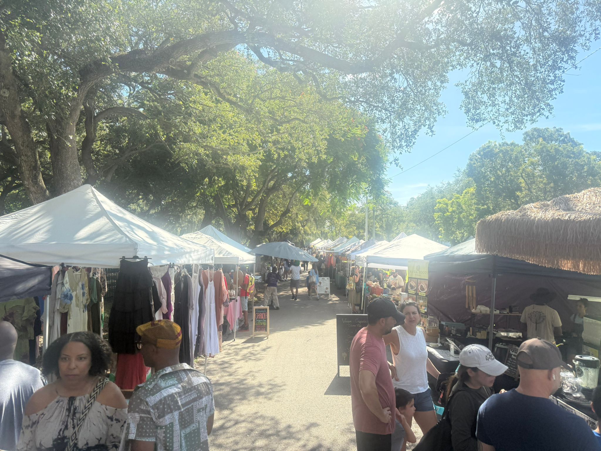 Every Saturday morning, Miami’s Upper Eastside transforms into a bustling marketplace under the banyan trees of Legion Park. By 9:30 or 10 AM, the paths are lined with tents, tables, and colorful displays of produce, baked goods, and handmade items. The shade of the banyans makes even the hottest summer mornings bearable, and the bay breeze carries the smell of fresh bread and roasted coffee.